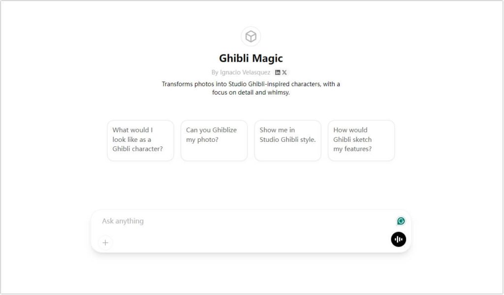 Start by visiting the ChatGPT Ghibli Magic generator. This tool is specifically designed to help you create Ghibli-style images, bringing the magic of Studio Ghibli right to your screen.